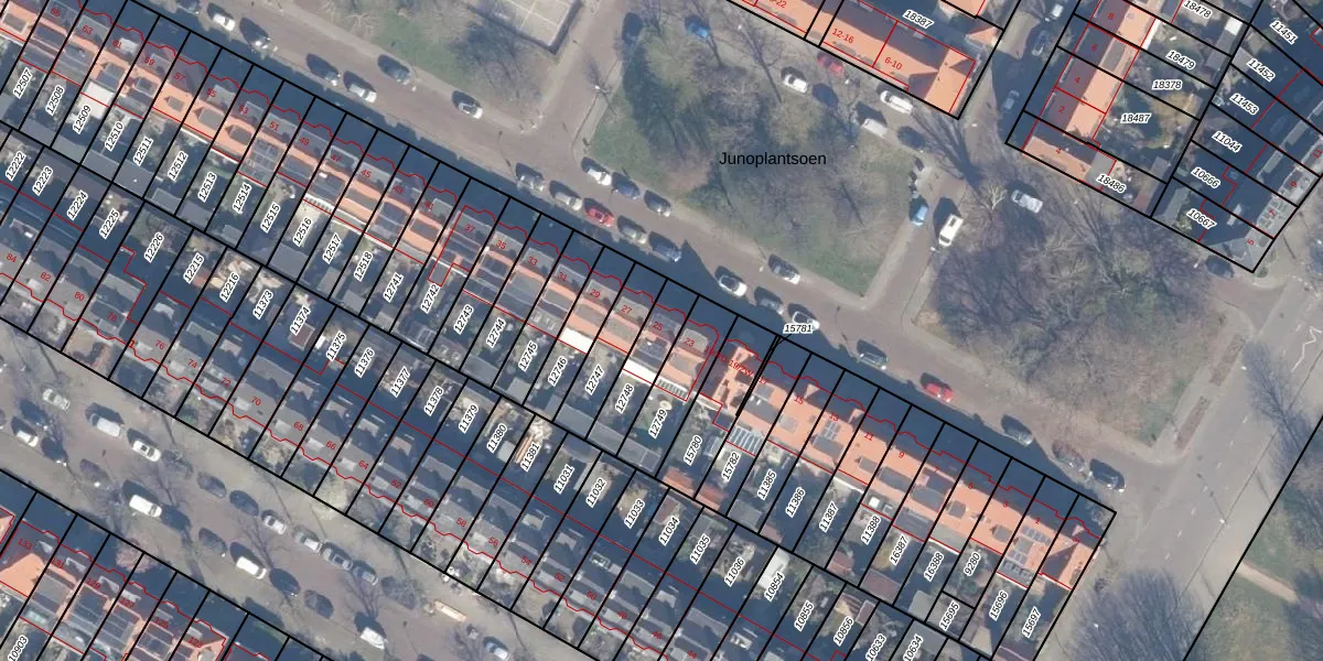 Het perceel waarop Junoplantsoen 25 staat heeft een oppervlakte van 149 m². Dit is een middelgroot perceel. De perceeloppervlakte wordt geregistreerd door het Kadaster. Gedetailleerde informatie over de maten van dit perceel kunt u vinden in het rapport Kadastrale kaart met maatvoering van Junoplantsoen 25.
