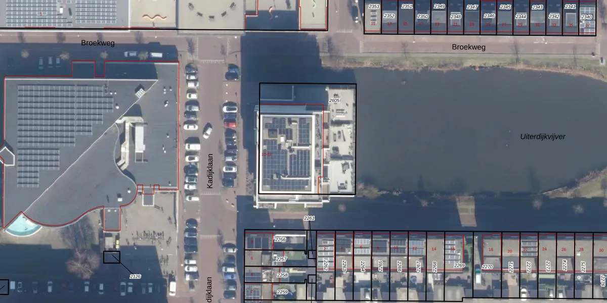 Kadijklaan 46 is gelegen op kadastraal perceel HLM02Q2605. Deze kadastrale aanduiding is uniek en wordt gebruikt door het Kadaster om eigendomsrechten en andere zakelijke rechten vast te leggen. Het perceel maakt onderdeel uit van de kadastrale gemeente Haarlem.
