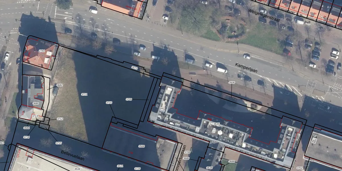 Het perceel waarop Kamperlaan 38 staat heeft een oppervlakte van 2340 m². Dit is een zeer groot perceel. De perceeloppervlakte wordt geregistreerd door het Kadaster. Gedetailleerde informatie over de maten van dit perceel kunt u vinden in het rapport Kadastrale kaart met maatvoering van Kamperlaan 38.