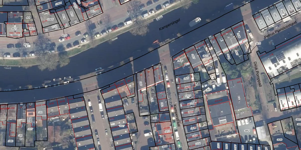 Gebruik de zoekbalk of klik op een perceel voor informatie over de adressen binnen dit perceel.