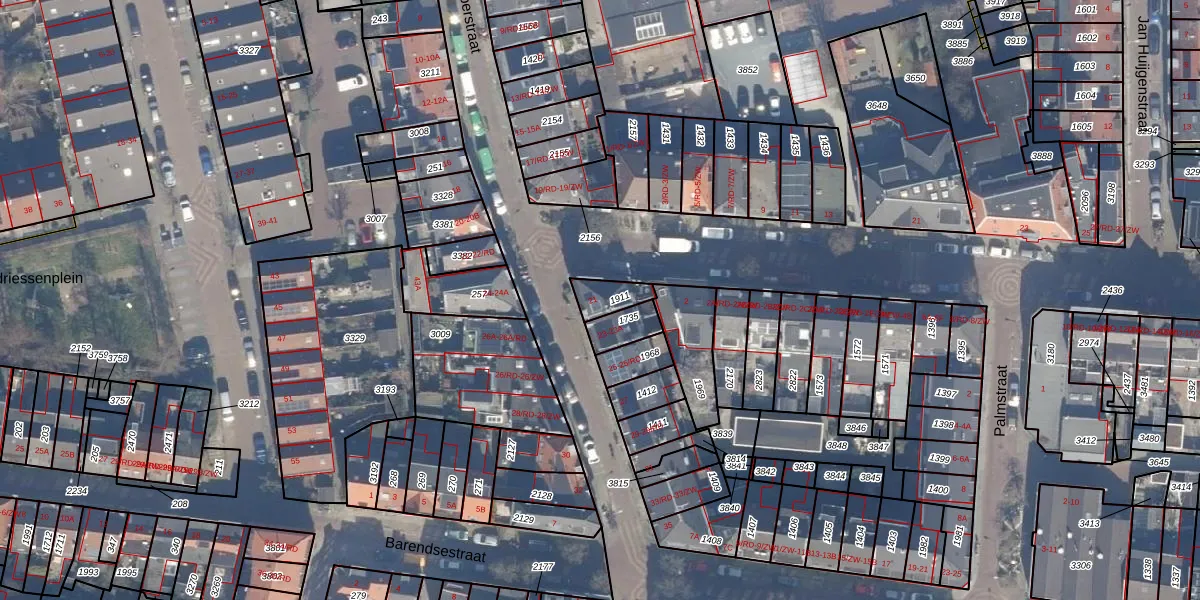 Het adres ligt op het perceel HLM01-K-1911, dat zich in de kadastrale gemeente Haarlem bevindt. Het perceel is 65 m² groot. Dat is kleiner dan de gemiddelde perceeloppervlakte in Haarlem, dat op 328,37 m² ligt. Het grootste perceel in de kadastrale gemeente is 13,9 ha. Het kleinste perceel heeft een oppervlakte van 0 m². Dit is het enige adres dat aanwezig is op het perceel. In de Basisregistratie Kadaster (BRK) werden de grenzen van het perceel geregistreerd op 18-08-2008.