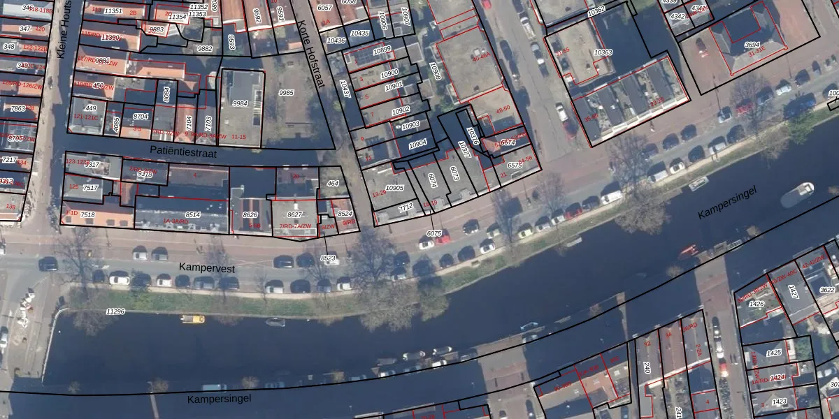 Het perceel waarop Kampervest 15 staat heeft een oppervlakte van 45 m². Dit is een klein perceel. De perceeloppervlakte wordt geregistreerd door het Kadaster. Gedetailleerde informatie over de maten van dit perceel kunt u vinden in het rapport Kadastrale kaart met maatvoering van Kampervest 15.