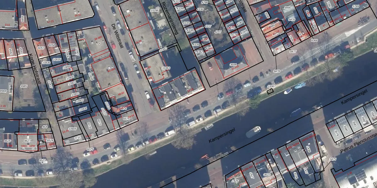 Het perceel waarop Kampervest 25 staat heeft een oppervlakte van 656 m². Dit is een groot perceel. De perceeloppervlakte wordt geregistreerd door het Kadaster. Gedetailleerde informatie over de maten van dit perceel kunt u vinden in het rapport Kadastrale kaart met maatvoering van Kampervest 25.