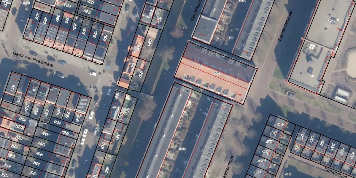 Karabiniersstraat 11 is gelegen op kadastraal perceel HLM01G3933. Deze kadastrale aanduiding is uniek en wordt gebruikt door het Kadaster om eigendomsrechten en andere zakelijke rechten vast te leggen. Het perceel maakt onderdeel uit van de kadastrale gemeente Haarlem.