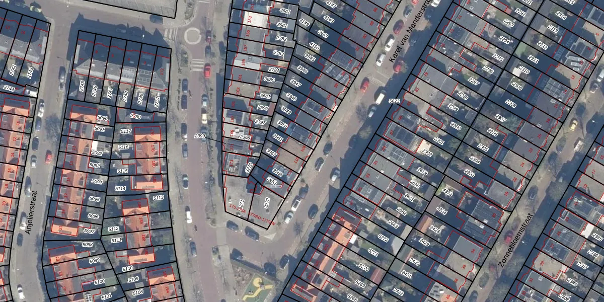 Het perceel waarop Karel van Manderstraat 108 staat heeft een oppervlakte van 79 m². Dit is een klein perceel. De perceeloppervlakte wordt geregistreerd door het Kadaster. Gedetailleerde informatie over de maten van dit perceel kunt u vinden in het rapport Kadastrale kaart met maatvoering van Karel van Manderstraat 108.