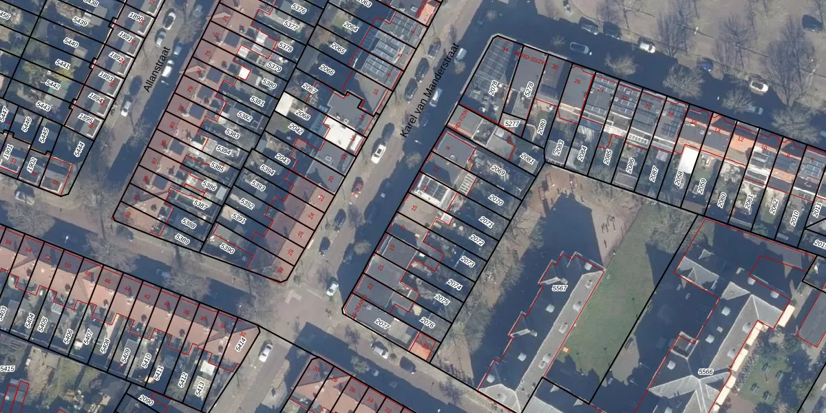 Gebruik de zoekbalk of klik op een perceel voor informatie over de adressen binnen dit perceel.