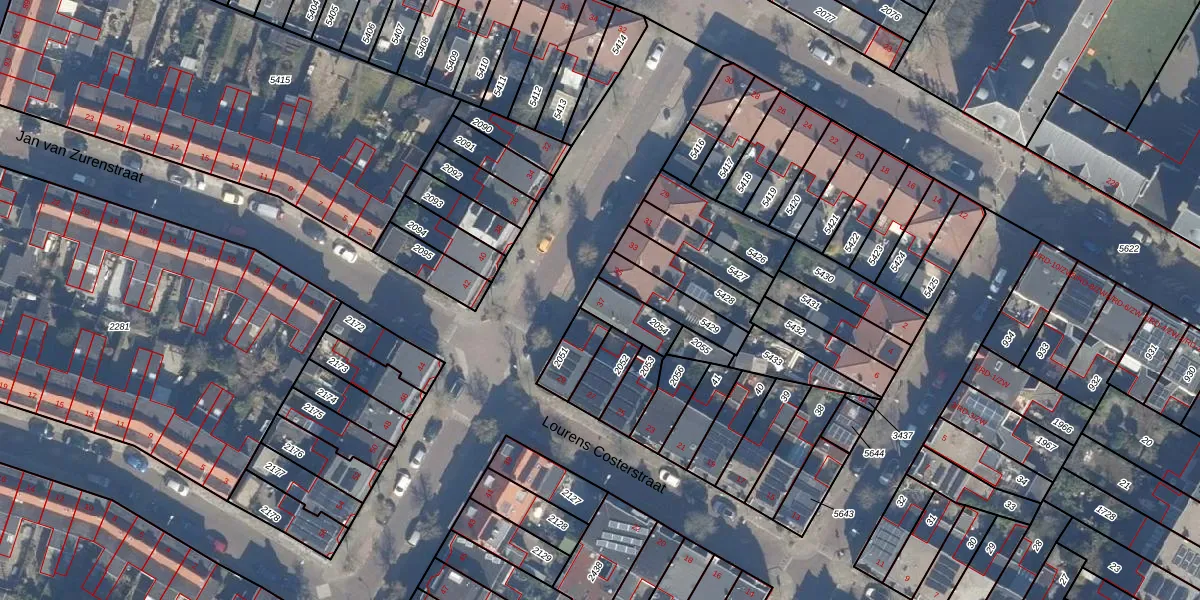 Het adres ligt op het perceel HLM01-I-2054, dat zich in de kadastrale gemeente Haarlem bevindt. Het perceel is 97 m² groot. Dat is kleiner dan de gemiddelde perceeloppervlakte in Haarlem, dat op 328,17 m² ligt. Het grootste perceel in de kadastrale gemeente is 13,9 ha. Het kleinste perceel heeft een oppervlakte van 0 m². Op het perceel bevinden zich geen andere adressen. De laatste wijziging in het de Basisregistratie Kadaster (BRK) was op 28-11-1997.