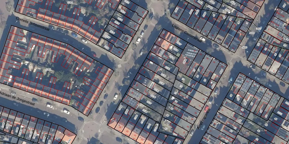Het adres ligt op het perceel HLM01-I-2134, dat zich in de kadastrale gemeente Haarlem bevindt. Het perceel is 151 m² groot. Dat is kleiner dan de gemiddelde perceeloppervlakte in Haarlem, dat op 328,37 m² ligt. Het grootste perceel in de kadastrale gemeente is 13,9 ha. Het kleinste perceel heeft een oppervlakte van 0 m². Dit is het enige adres dat aanwezig is op het perceel. De laatste wijziging in het de Basisregistratie Kadaster (BRK) was op 07-08-2001.