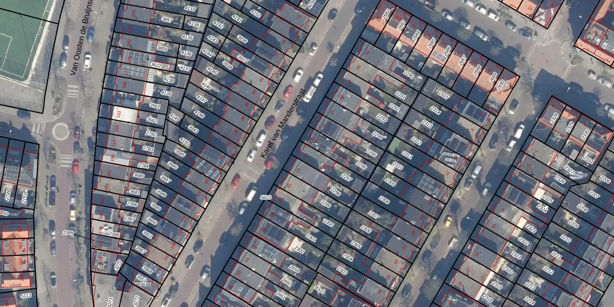 Het perceel waarop Karel van Manderstraat 77 staat heeft een oppervlakte van 144 m². Dit is een middelgroot perceel. De perceeloppervlakte wordt geregistreerd door het Kadaster. Gedetailleerde informatie over de maten van dit perceel kunt u vinden in het rapport Kadastrale kaart met maatvoering van Karel van Manderstraat 77.