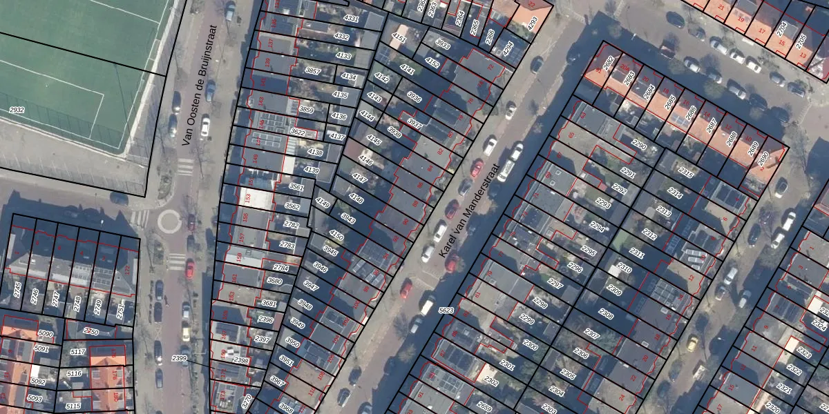 Het perceel waarop Karel van Manderstraat 88 staat heeft een oppervlakte van 118 m². Dit is een middelgroot perceel. De perceeloppervlakte wordt geregistreerd door het Kadaster. Gedetailleerde informatie over de maten van dit perceel kunt u vinden in het rapport Kadastrale kaart met maatvoering van Karel van Manderstraat 88.