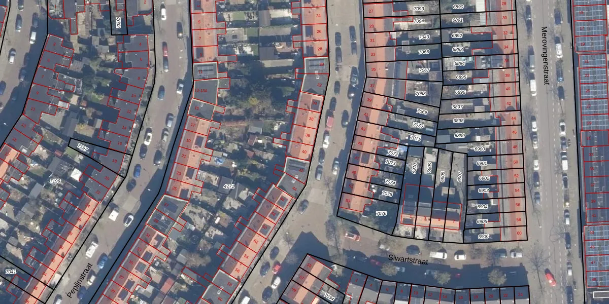 Het perceel waarop Karolingenstraat 40 staat heeft een oppervlakte van 7570 m². Dit is een zeer groot perceel. De perceeloppervlakte wordt geregistreerd door het Kadaster. Gedetailleerde informatie over de maten van dit perceel kunt u vinden in het rapport Kadastrale kaart met maatvoering van Karolingenstraat 40.