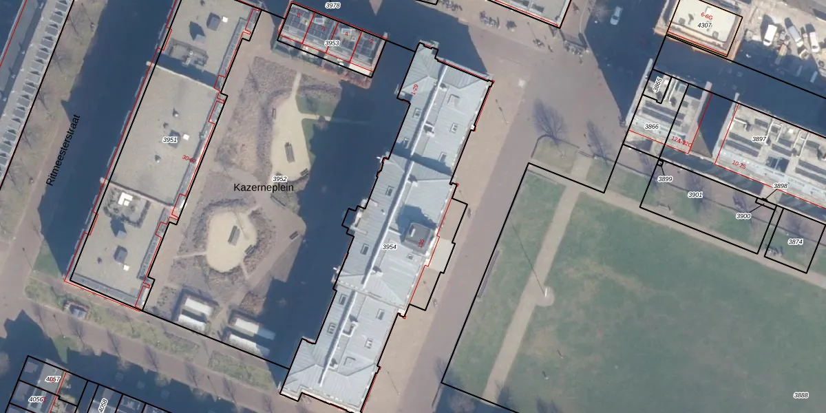 Het perceel waarop Kazerneplein 20 staat heeft een oppervlakte van 1728 m². Dit is een zeer groot perceel. De perceeloppervlakte wordt geregistreerd door het Kadaster. Gedetailleerde informatie over de maten van dit perceel kunt u vinden in het rapport Kadastrale kaart met maatvoering van Kazerneplein 20.