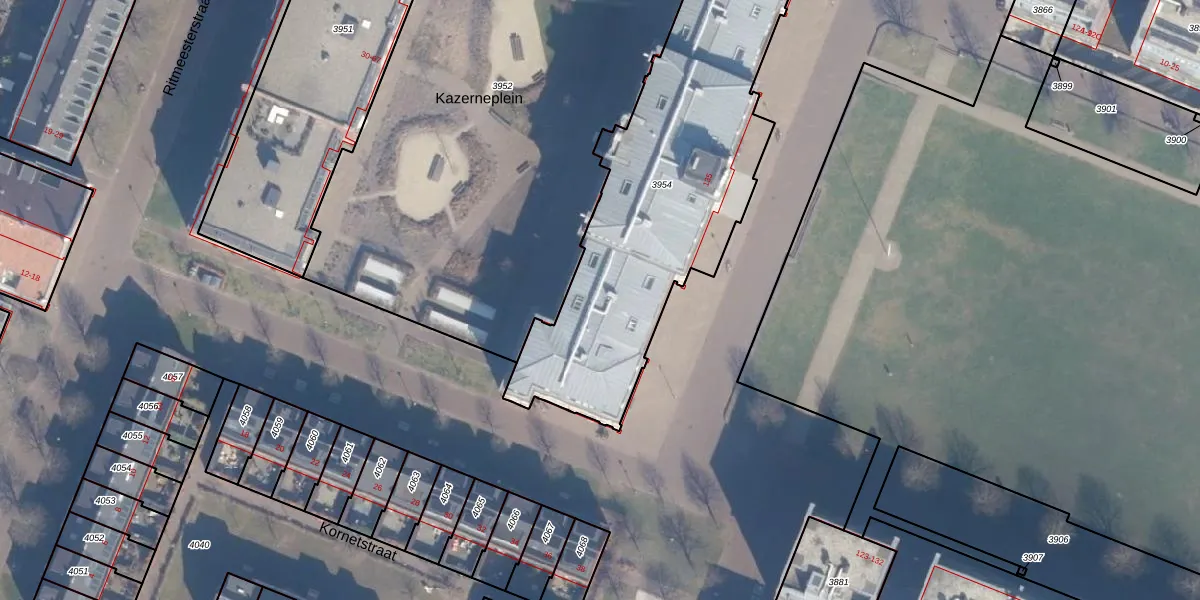 Kazerneplein 3 is gelegen op kadastraal perceel HLM01G3954. Deze kadastrale aanduiding is uniek en wordt gebruikt door het Kadaster om eigendomsrechten en andere zakelijke rechten vast te leggen. Het perceel maakt onderdeel uit van de kadastrale gemeente Haarlem.