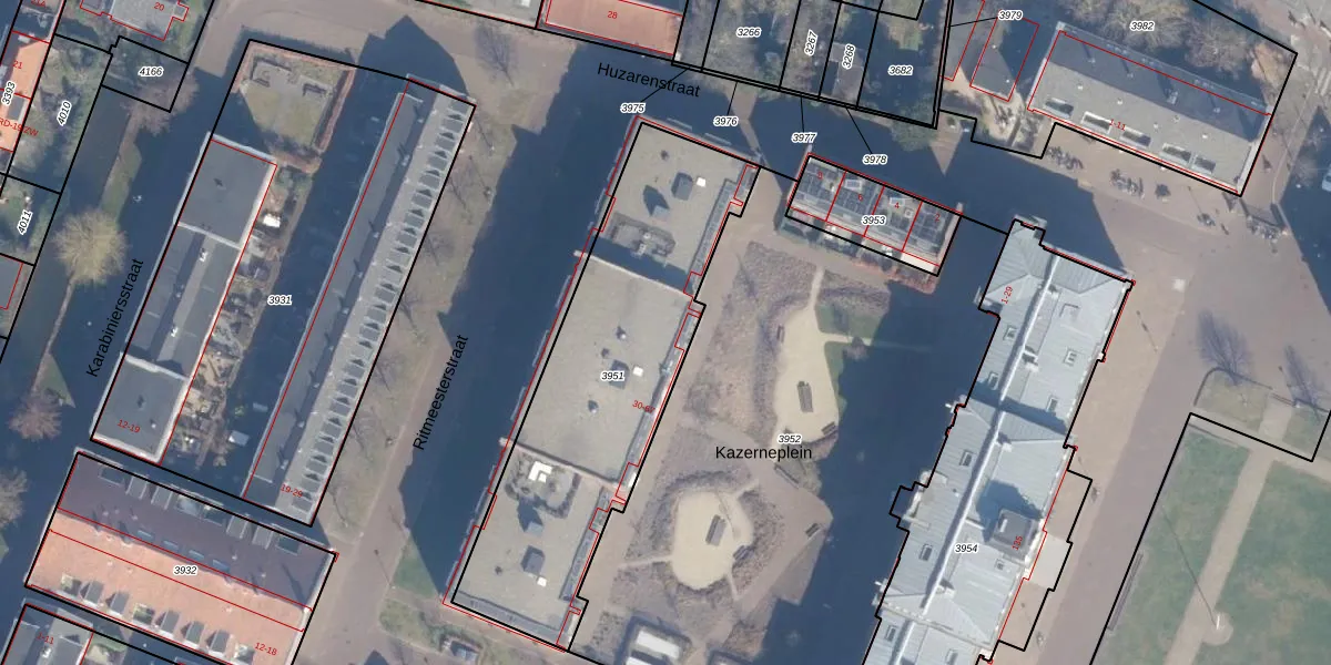 Het perceel waarop Kazerneplein 46 staat heeft een oppervlakte van 1465 m². Dit is een zeer groot perceel. De perceeloppervlakte wordt geregistreerd door het Kadaster. Gedetailleerde informatie over de maten van dit perceel kunt u vinden in het rapport Kadastrale kaart met maatvoering van Kazerneplein 46.