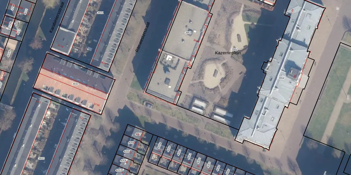 Het perceel waarop Kazerneplein 64 staat heeft een oppervlakte van 1465 m². Dit is een zeer groot perceel. De perceeloppervlakte wordt geregistreerd door het Kadaster. Gedetailleerde informatie over de maten van dit perceel kunt u vinden in het rapport Kadastrale kaart met maatvoering van Kazerneplein 64.