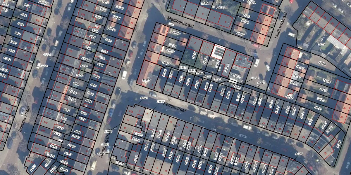 Het perceel waarop Kedoestraat 7-A staat heeft een oppervlakte van 73 m². Dit is een klein perceel. De perceeloppervlakte wordt geregistreerd door het Kadaster. Gedetailleerde informatie over de maten van dit perceel kunt u vinden in het rapport Kadastrale kaart met maatvoering van Kedoestraat 7-A.