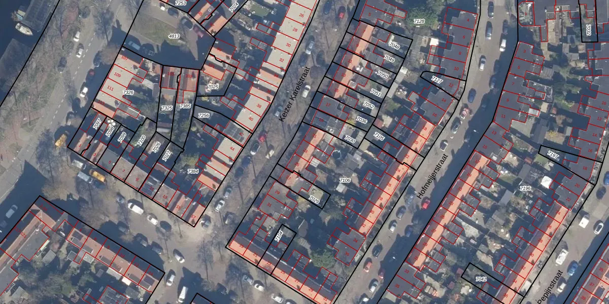 Het perceel waarop Keizer Karelstraat 23 staat heeft een oppervlakte van 1870 m². Dit is een zeer groot perceel. De perceeloppervlakte wordt geregistreerd door het Kadaster. Gedetailleerde informatie over de maten van dit perceel kunt u vinden in het rapport Kadastrale kaart met maatvoering van Keizer Karelstraat 23.