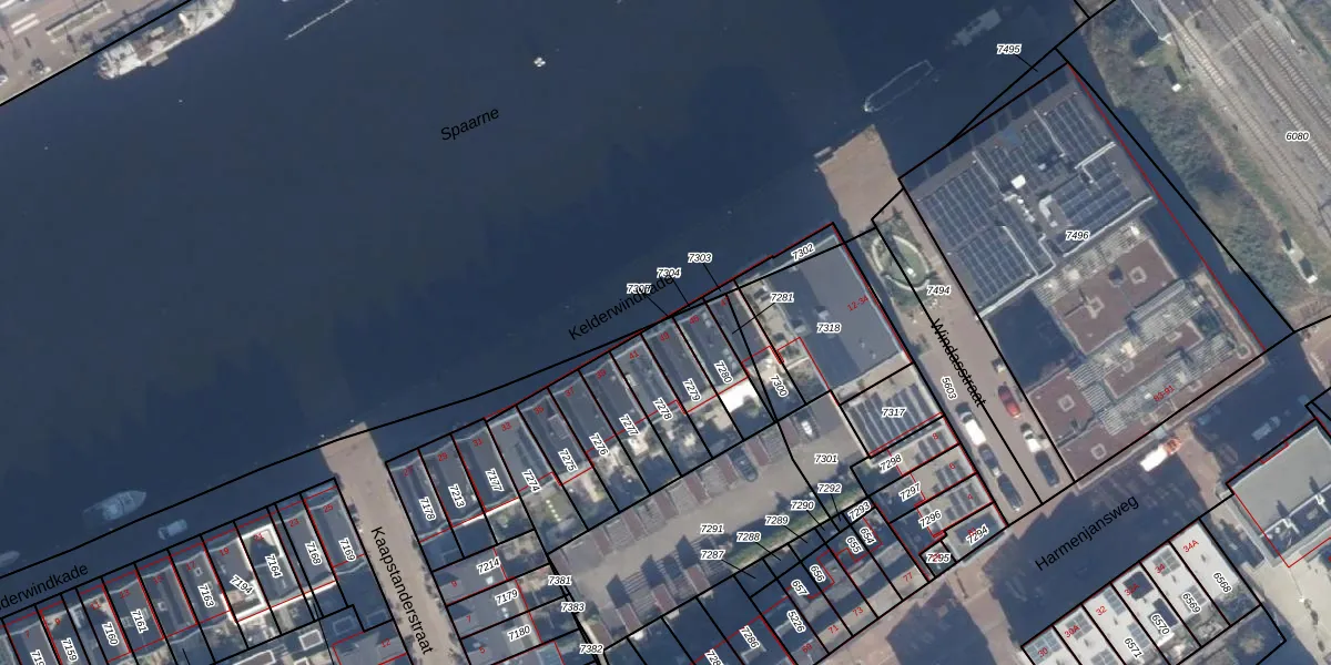 Kelderwindkade 43 is gelegen op kadastraal perceel HLM01E7279. Deze kadastrale aanduiding is uniek en wordt gebruikt door het Kadaster om eigendomsrechten en andere zakelijke rechten vast te leggen. Het perceel maakt onderdeel uit van de kadastrale gemeente Haarlem.