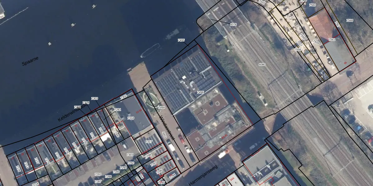 Het perceel waarop het adres ligt is HLM01-E-7496. De afkorting 'HLM01' staat voor kadastrale gemeente Haarlem. De oppervlakte van het perceel is 1843 m². Dat is groter dan gemiddeld in Haarlem, waar de gemiddelde perceeloppervlakte op 328,17 m² ligt. De grootste perceeloppervlakte in de kadastrale gemeente is 13,9 ha. De kleinste oppervlakte bedraagt 0 m². Op het perceel zijn 56 adressen aanwezig. In de Basisregistratie Kadaster (BRK) werden de grenzen van het perceel geregistreerd op 23-11-2020.