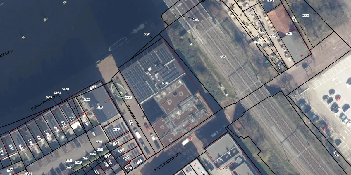 Het perceel waarop het adres ligt is HLM01-E-7496. De afkorting 'HLM01' staat voor kadastrale gemeente Haarlem. De oppervlakte van het perceel is 1843 m². Dat is groter dan gemiddeld in Haarlem, waar de gemiddelde perceeloppervlakte op 328,17 m² ligt. Het grootste perceel in de kadastrale gemeente is 13,9 ha. Het kleinste perceel heeft een oppervlakte van 0 m². Op het perceel liggen in totaal 56 adressen. De huidige grenzen van het perceel zijn digitaal in de Basisregistratie Kadaster (BRK) geregistreerd op 23-11-2020.