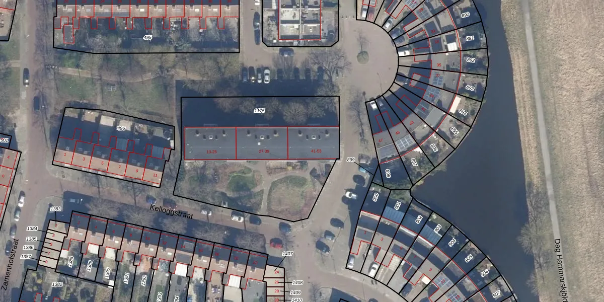 Het perceel waarop Kelloggstraat 41 staat heeft een oppervlakte van 1908 m². Dit is een zeer groot perceel. De perceeloppervlakte wordt geregistreerd door het Kadaster. Gedetailleerde informatie over de maten van dit perceel kunt u vinden in het rapport Kadastrale kaart met maatvoering van Kelloggstraat 41.