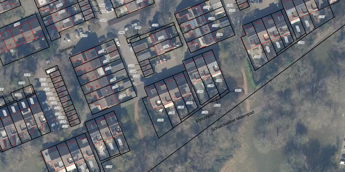 Gebruik de zoekbalk of klik op een perceel voor informatie over de adressen binnen dit perceel.