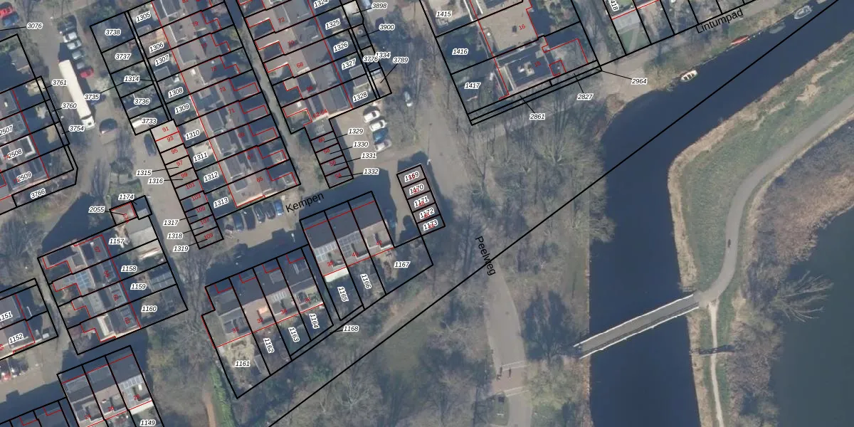 Het perceel waarop Kempen 46 staat heeft een oppervlakte van 18 m². Dit is een klein perceel. De perceeloppervlakte wordt geregistreerd door het Kadaster. Gedetailleerde informatie over de maten van dit perceel kunt u vinden in het rapport Kadastrale kaart met maatvoering van Kempen 46.
