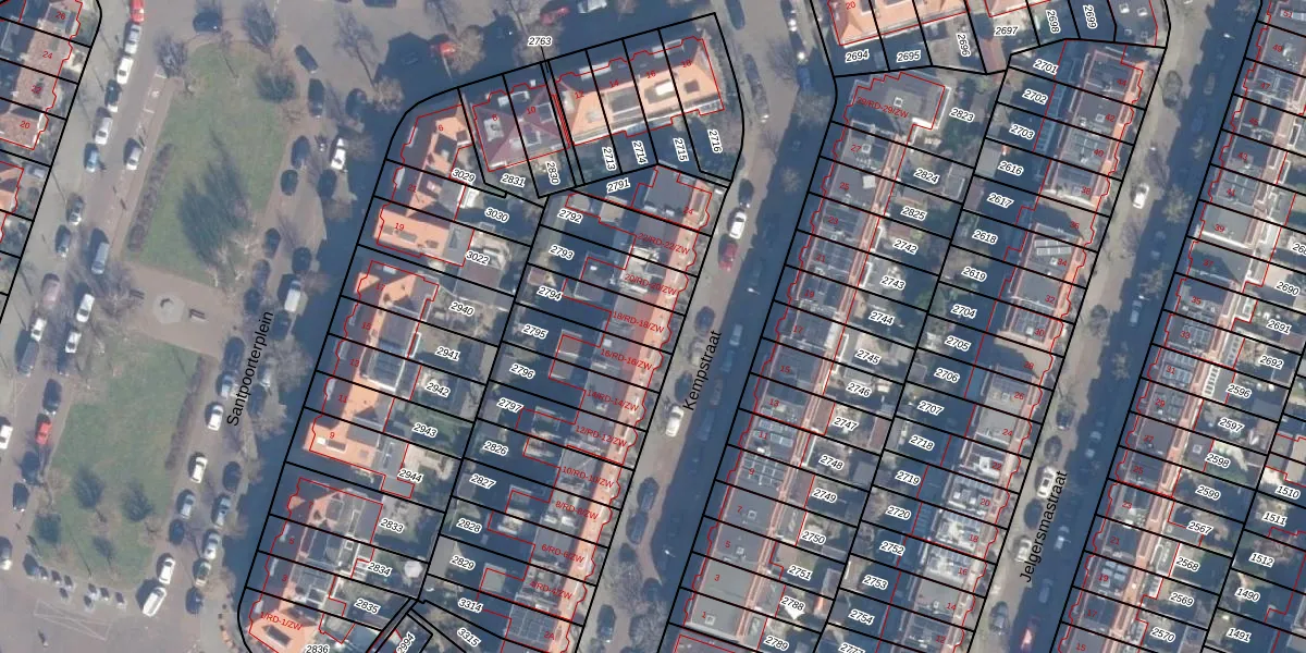 Kempstraat 18-ZW is gelegen op kadastraal perceel HLM01G2794. Deze kadastrale aanduiding is uniek en wordt gebruikt door het Kadaster om eigendomsrechten en andere zakelijke rechten vast te leggen. Het perceel maakt onderdeel uit van de kadastrale gemeente Haarlem.