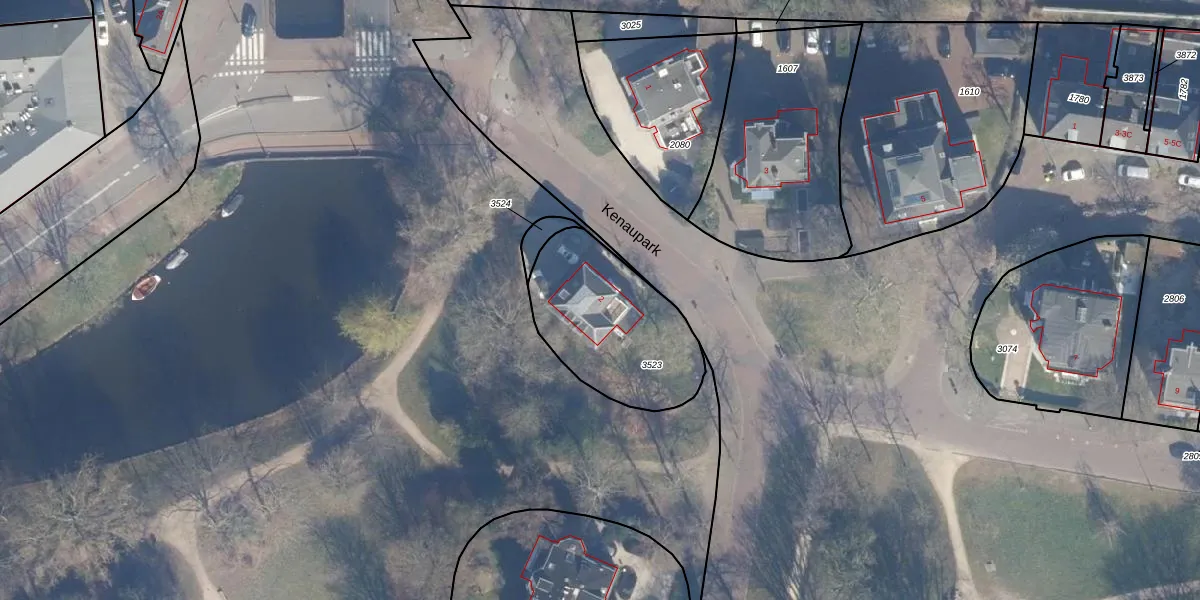 Het perceel waarop Kenaupark 2 staat heeft een oppervlakte van 526 m². Dit is een groot perceel. De perceeloppervlakte wordt geregistreerd door het Kadaster. Gedetailleerde informatie over de maten van dit perceel kunt u vinden in het rapport Kadastrale kaart met maatvoering van Kenaupark 2.