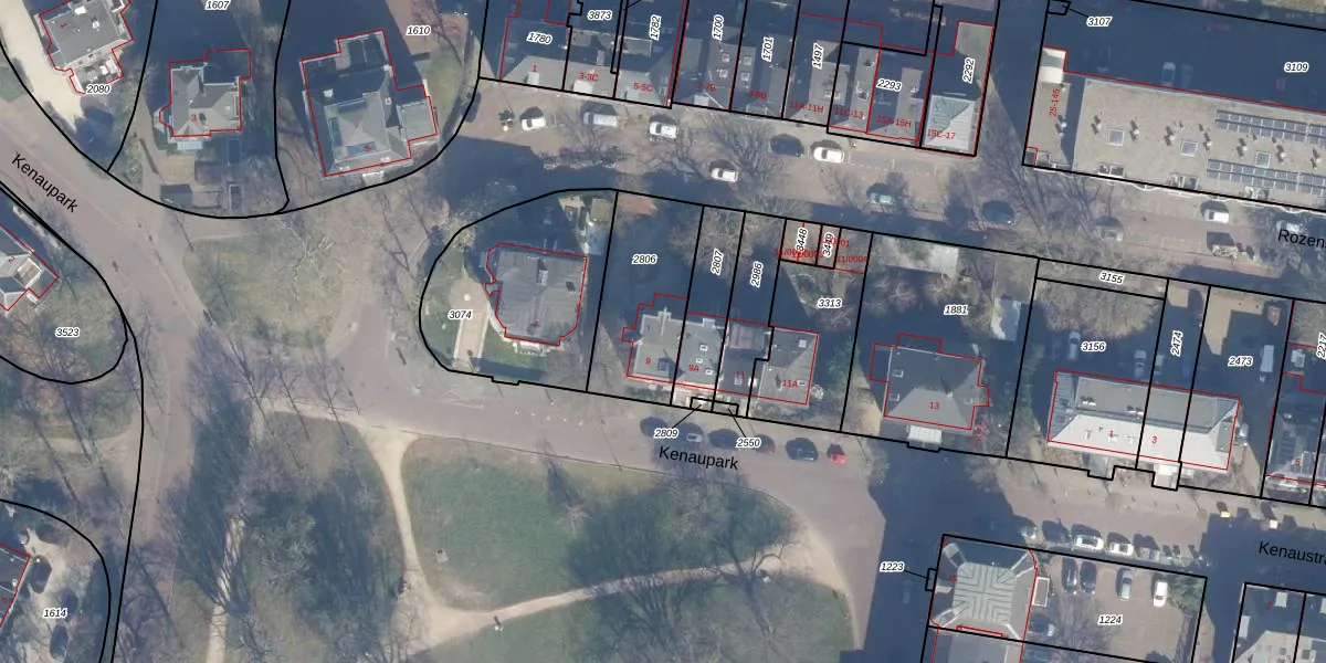 Kenaupark 9-D is gelegen op kadastraal perceel HLM01B2806. Deze kadastrale aanduiding is uniek en wordt gebruikt door het Kadaster om eigendomsrechten en andere zakelijke rechten vast te leggen. Het perceel maakt onderdeel uit van de kadastrale gemeente Haarlem.