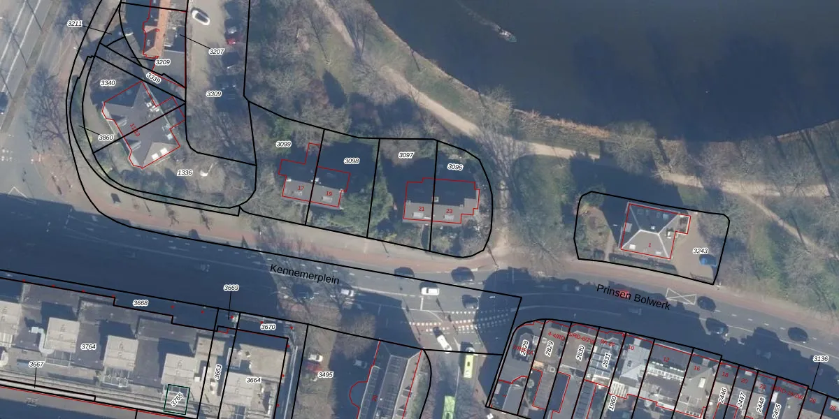 Het perceel waarop Kennemerplein 21 staat heeft een oppervlakte van 360 m². Dit is een groot perceel. De perceeloppervlakte wordt geregistreerd door het Kadaster. Gedetailleerde informatie over de maten van dit perceel kunt u vinden in het rapport Kadastrale kaart met maatvoering van Kennemerplein 21.