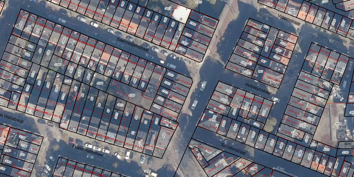 Het adres ligt op het perceel HLM01-G-2311, dat zich in de kadastrale gemeente Haarlem bevindt. Het perceel is 87 m² groot. Dat is kleiner dan de gemiddelde perceeloppervlakte in Haarlem, dat op 328,37 m² ligt. Het kleinste perceel in de kadastrale gemeente is 0 m² groot. De grootste perceeloppervlakte is 13,9 ha. Op het perceel zijn 3 adressen aanwezig. In de Basisregistratie Kadaster (BRK) werden de grenzen van het perceel geregistreerd op 26-09-2001.