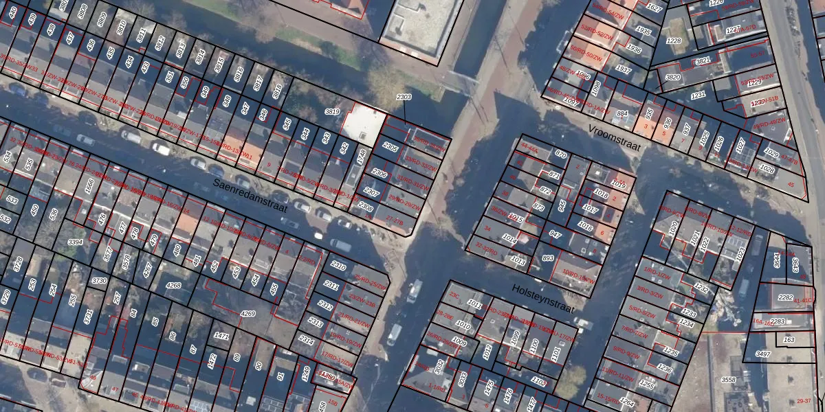 Het adres ligt op het perceel HLM01-G-2307, dat zich in de kadastrale gemeente Haarlem bevindt. Het perceel is kleiner dan gemiddeld in Haarlem. Het perceel is 85 m² groot, terwijl het gemiddelde ligt op 328,17 m². Het kleinste perceel in de kadastrale gemeente is 0 m² groot. De grootste perceeloppervlakte is 13,9 ha. Op het perceel liggen in totaal 2 adressen. De huidige grenzen van het perceel zijn digitaal in de Basisregistratie Kadaster (BRK) geregistreerd op 26-09-2001.