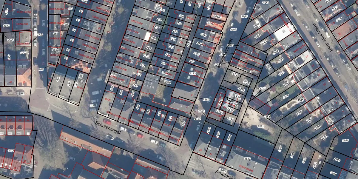 Het adres is gelegen op perceel 4160 in de sectie G en de kadastrale gemeente Haarlem. De kadastrale aanduiding is aldus HLM01-G-4160. Het perceel is kleiner dan gemiddeld in Haarlem. Het perceel is 115 m² groot, terwijl het gemiddelde ligt op 328,09 m². Het kleinste perceel in de kadastrale gemeente is 0 m² groot. De grootste perceeloppervlakte is 13,9 ha. Er zijn 3 adressen aanwezig op het perceel. De huidige grenzen van het perceel zijn digitaal in de Basisregistratie Kadaster (BRK) geregistreerd op 21-07-2014.
