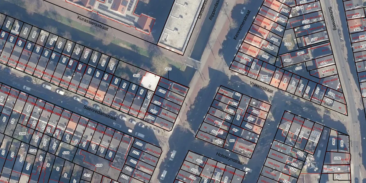 Het adres ligt op het perceel HLM01-G-2303, dat zich in de kadastrale gemeente Haarlem bevindt. Het perceel is kleiner dan gemiddeld in Haarlem. Het perceel is 92 m² groot, terwijl het gemiddelde ligt op 328,17 m². De grootste perceeloppervlakte in de kadastrale gemeente is 13,9 ha. De kleinste oppervlakte bedraagt 0 m². Er zijn 2 adressen aanwezig op het perceel. De huidige grenzen van het perceel zijn digitaal in de Basisregistratie Kadaster (BRK) geregistreerd op 07-12-2010.