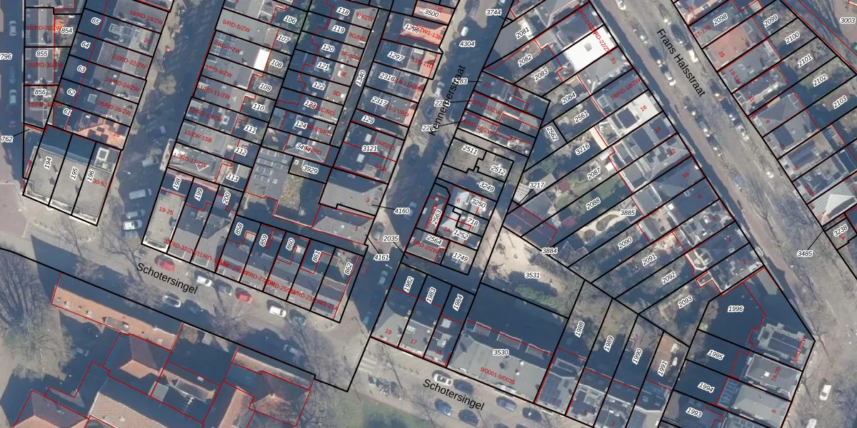 Het adres ligt op het perceel HLM01-B-2563, dat zich in de kadastrale gemeente Haarlem bevindt. Het perceel is kleiner dan gemiddeld in Haarlem. Het perceel is 48 m² groot, terwijl het gemiddelde ligt op 328,37 m². Het kleinste perceel in de kadastrale gemeente is 0 m² groot. De grootste perceeloppervlakte is 13,9 ha. Er zijn 2 adressen aanwezig op het perceel. De huidige grenzen van het perceel zijn digitaal in de Basisregistratie Kadaster (BRK) geregistreerd op 06-09-2001.