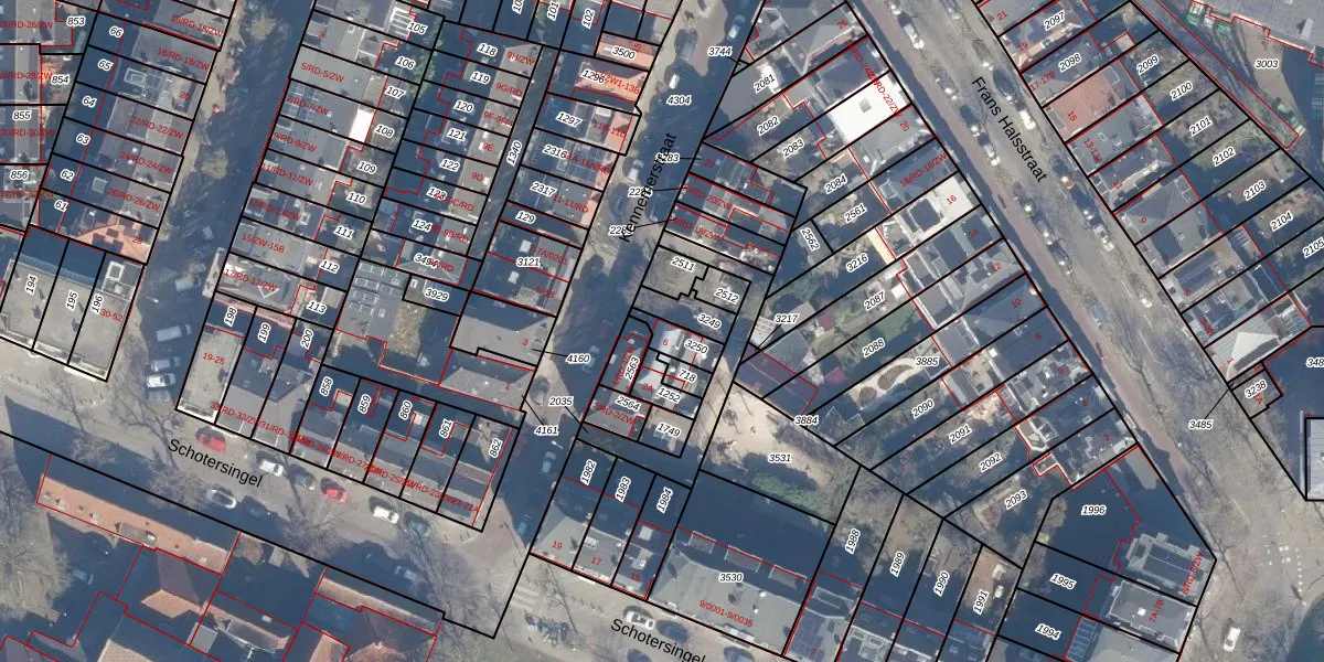 Het adres ligt op het perceel HLM01-B-3250, dat zich in de kadastrale gemeente Haarlem bevindt. De gemiddelde perceelgrootte in Haarlem is 328,37 m². Dit perceel is kleiner: de perceeloppervlakte bedraagt 58 m². De grootste perceeloppervlakte in de kadastrale gemeente is 13,9 ha. De kleinste oppervlakte bedraagt 0 m². Er zijn geen andere adressen aanwezig op het perceel. In de Basisregistratie Kadaster (BRK) werden de grenzen van het perceel geregistreerd op 28-11-1997.