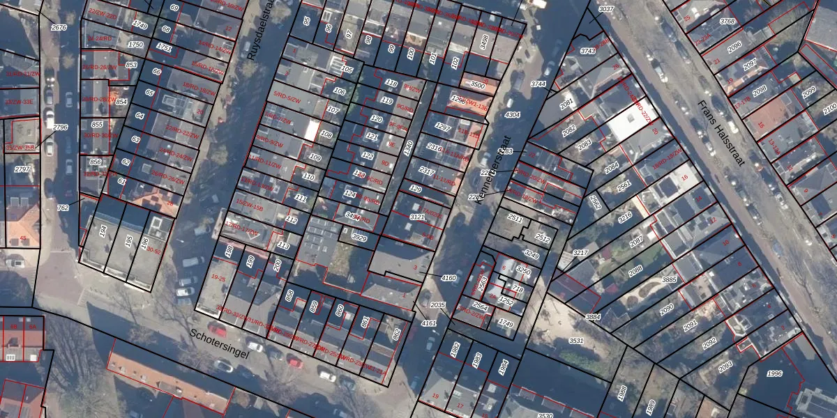 Het adres is gelegen op perceel 3121 in de sectie G en de kadastrale gemeente Haarlem. De kadastrale aanduiding is aldus HLM01-G-3121. Het perceel is 145 m² groot. Dat is kleiner dan de gemiddelde perceeloppervlakte in Haarlem, dat op 328,37 m² ligt. Het kleinste perceel in de kadastrale gemeente is 0 m² groot. De grootste perceeloppervlakte is 13,9 ha. Op het perceel liggen in totaal 6 adressen. De laatste wijziging in het de Basisregistratie Kadaster (BRK) was op 03-11-2005.