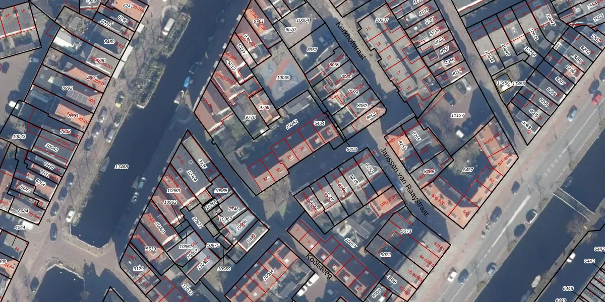 Het adres ligt op het perceel HLM01-D-10062, dat zich in de kadastrale gemeente Haarlem bevindt. De gemiddelde perceeloppervlakte in de kadastrale gemeente Haarlem is 328,37 m². Dit perceel is met zijn 825 m² dus groter dan gemiddeld. De grootste perceeloppervlakte in de kadastrale gemeente is 13,9 ha. De kleinste oppervlakte bedraagt 0 m². Op het perceel liggen in totaal 10 adressen. In de Basisregistratie Kadaster (BRK) werden de grenzen van het perceel geregistreerd op 11-09-2001.