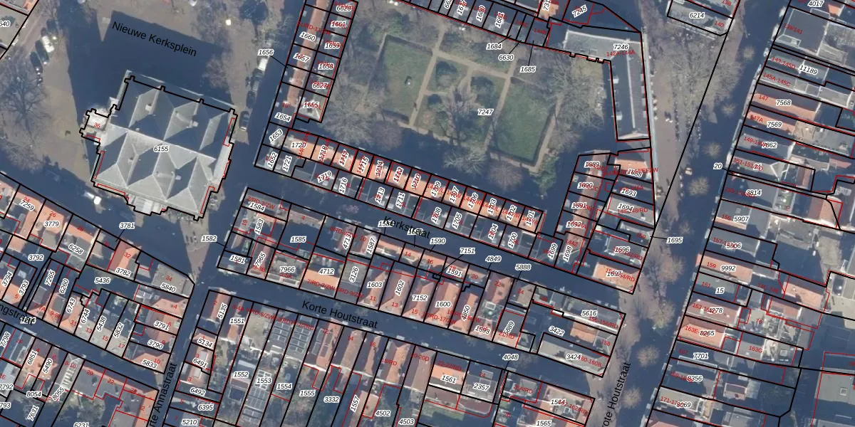Gebruik de zoekbalk of klik op een perceel voor informatie over de adressen binnen dit perceel.