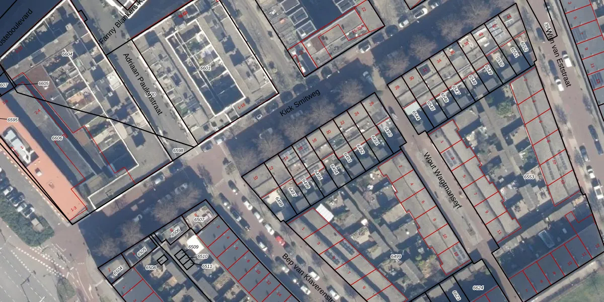Kick Smitweg 16 is gelegen op kadastraal perceel HLM01E6495. Deze kadastrale aanduiding is uniek en wordt gebruikt door het Kadaster om eigendomsrechten en andere zakelijke rechten vast te leggen. Het perceel maakt onderdeel uit van de kadastrale gemeente Haarlem.