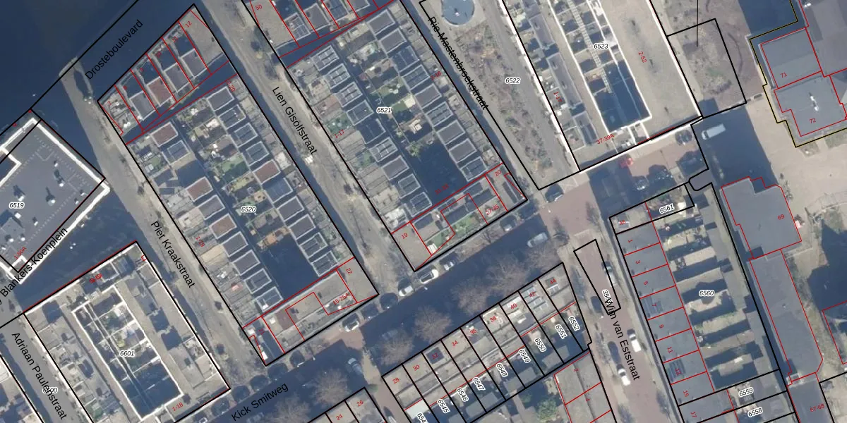 Kick Smitweg 31 is gelegen op kadastraal perceel HLM01E6521. Deze kadastrale aanduiding is uniek en wordt gebruikt door het Kadaster om eigendomsrechten en andere zakelijke rechten vast te leggen. Het perceel maakt onderdeel uit van de kadastrale gemeente Haarlem.