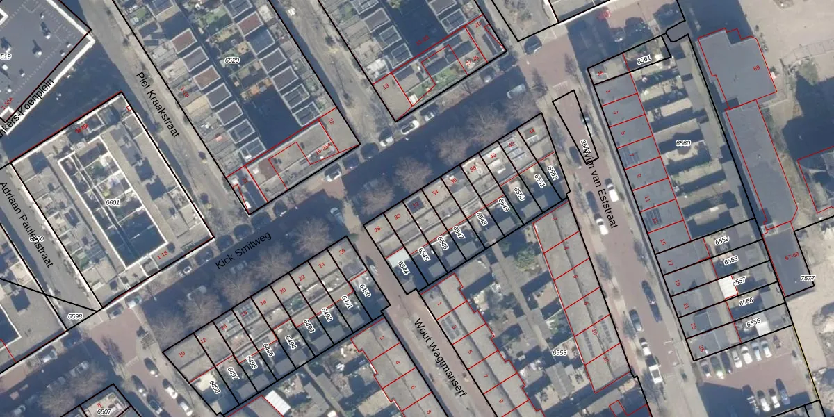 Kick Smitweg 32 is gelegen op kadastraal perceel HLM01E6546. Deze kadastrale aanduiding is uniek en wordt gebruikt door het Kadaster om eigendomsrechten en andere zakelijke rechten vast te leggen. Het perceel maakt onderdeel uit van de kadastrale gemeente Haarlem.