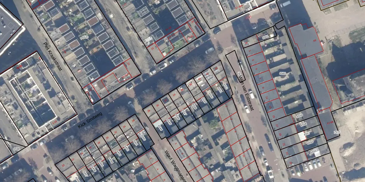 Kick Smitweg 36 is gelegen op kadastraal perceel HLM01E6548. Deze kadastrale aanduiding is uniek en wordt gebruikt door het Kadaster om eigendomsrechten en andere zakelijke rechten vast te leggen. Het perceel maakt onderdeel uit van de kadastrale gemeente Haarlem.