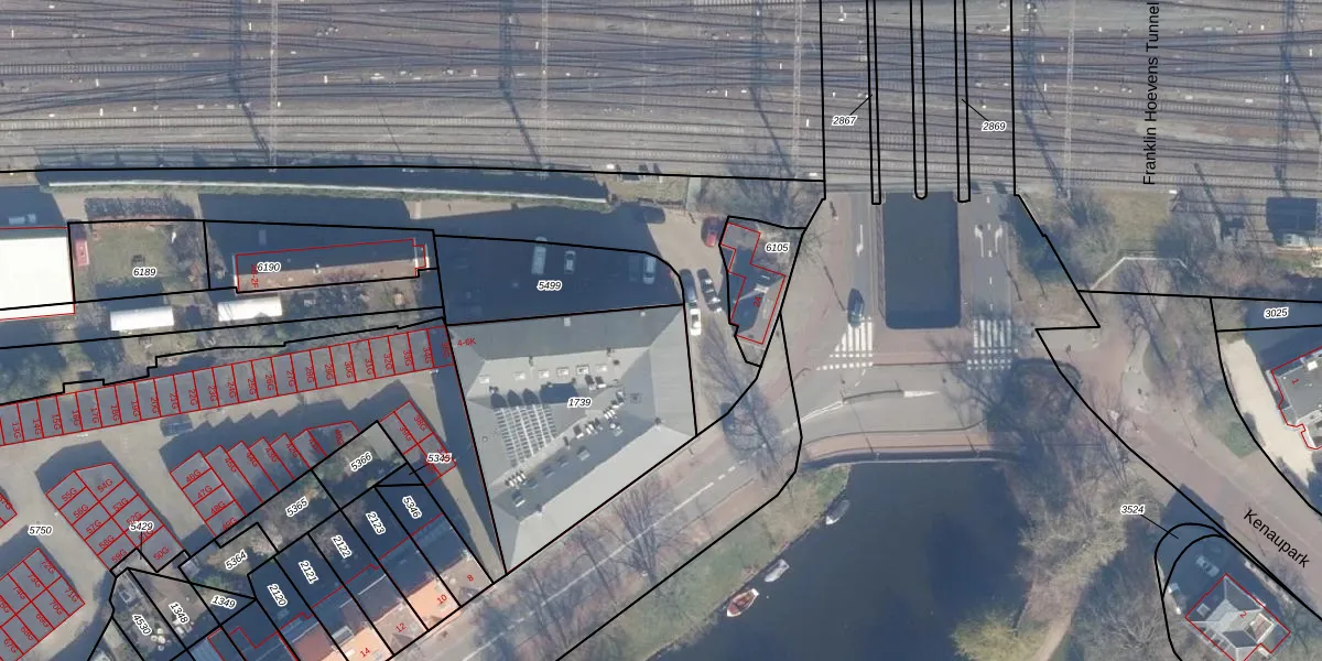 Het adres is gelegen op perceel 1739 in de sectie A en de kadastrale gemeente Haarlem. De kadastrale aanduiding is aldus HLM01-A-1739. De oppervlakte van het perceel is 1002 m². Dat is groter dan gemiddeld in Haarlem, waar de gemiddelde perceeloppervlakte op 328,37 m² ligt. Het kleinste perceel in de kadastrale gemeente is 0 m² groot. De grootste perceeloppervlakte is 13,9 ha. Er zijn 35 adressen aanwezig op het perceel. De huidige grenzen van het perceel zijn digitaal in de Basisregistratie Kadaster (BRK) geregistreerd op 10-06-2009.
