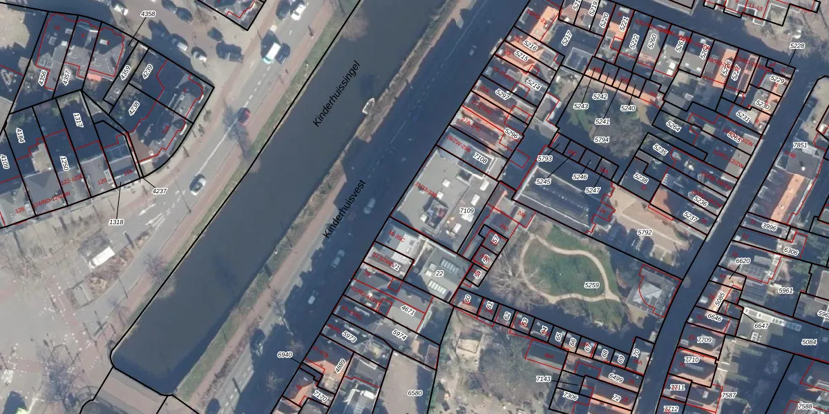 Het perceel waarop Kinderhuisvest 33-A staat heeft een oppervlakte van 351 m². Dit is een groot perceel. De perceeloppervlakte wordt geregistreerd door het Kadaster. Gedetailleerde informatie over de maten van dit perceel kunt u vinden in het rapport Kadastrale kaart met maatvoering van Kinderhuisvest 33-A.
