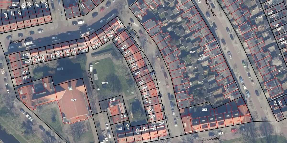 Het perceel waarop Kinkerstraat 12 staat heeft een oppervlakte van 80 m². Dit is een klein perceel. De perceeloppervlakte wordt geregistreerd door het Kadaster. Gedetailleerde informatie over de maten van dit perceel kunt u vinden in het rapport Kadastrale kaart met maatvoering van Kinkerstraat 12.