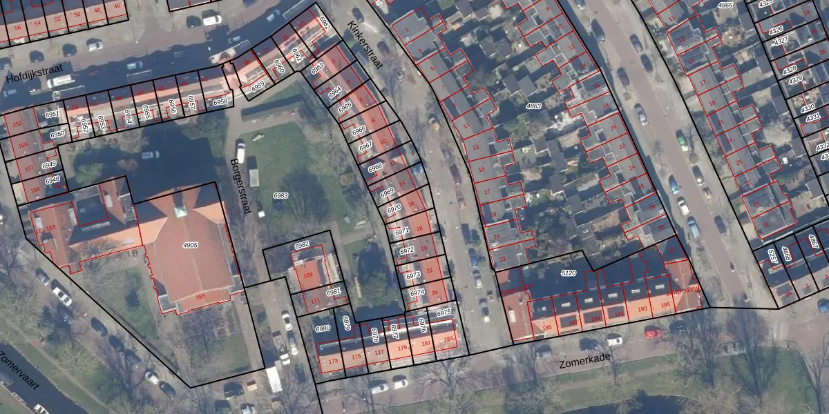 Het perceel waarop Kinkerstraat 16 staat heeft een oppervlakte van 70 m². Dit is een klein perceel. De perceeloppervlakte wordt geregistreerd door het Kadaster. Gedetailleerde informatie over de maten van dit perceel kunt u vinden in het rapport Kadastrale kaart met maatvoering van Kinkerstraat 16.