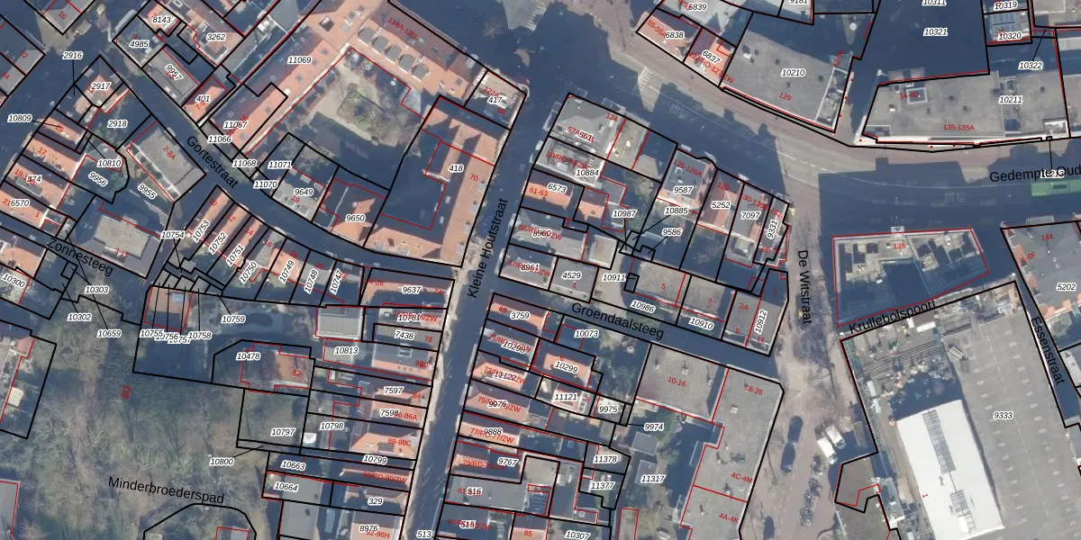 Kleine Houtstraat 67-RD is gelegen op kadastraal perceel HLM01D8961. Deze kadastrale aanduiding is uniek en wordt gebruikt door het Kadaster om eigendomsrechten en andere zakelijke rechten vast te leggen. Het perceel maakt onderdeel uit van de kadastrale gemeente Haarlem.