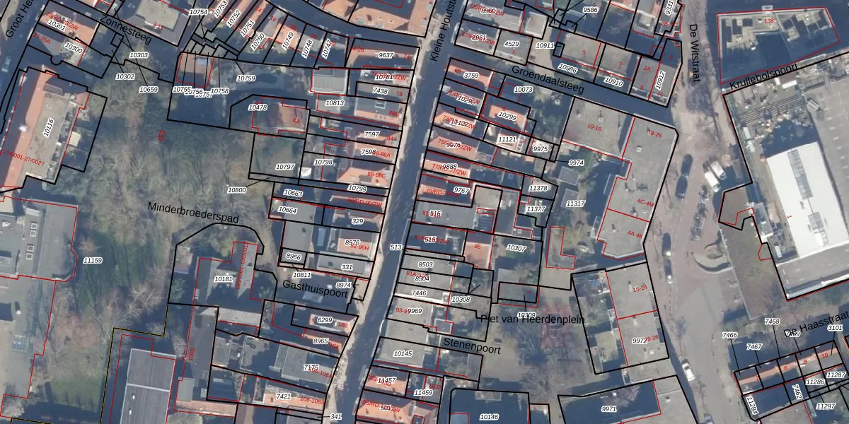 Kleine Houtstraat 81 is gelegen op kadastraal perceel HLM01D516. Deze kadastrale aanduiding is uniek en wordt gebruikt door het Kadaster om eigendomsrechten en andere zakelijke rechten vast te leggen. Het perceel maakt onderdeel uit van de kadastrale gemeente Haarlem.